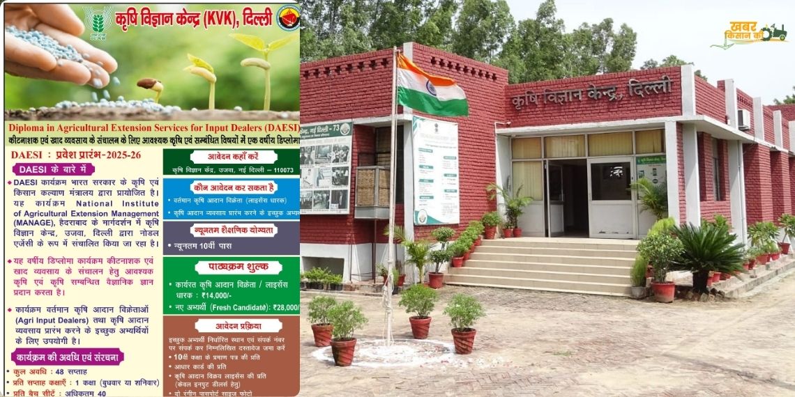 राजधानी दिल्ली और आसपास के ग्रामीण क्षेत्रों के युवाओं, किसानों और कृषि व्यापारियों के लिए स्वरोजगार का एक बड़ा द्वार खुलने जा रहा है। कृषि विज्ञान केंद्र (KVK), उजवा, दिल्ली ने ‘कृषि विस्तार सेवाओं में डिप्लोमा’ (DAESI – Diploma in Agricultural Extension Services for Input Dealers) के नए सत्र 2026 के लिए आवेदन आमंत्रित किए हैं। यह एक साल का विशेष कार्यक्रम है, जिसे कृषि मंत्रालय, भारत सरकार के दिशा-निर्देशों के अनुसार तैयार किया गया है। इसका मुख्य उद्देश्य कृषि क्षेत्र में तकनीकी ज्ञान को बढ़ाना और वैध लाइसेंस प्राप्त करने की प्रक्रिया को सरल बनाना है।